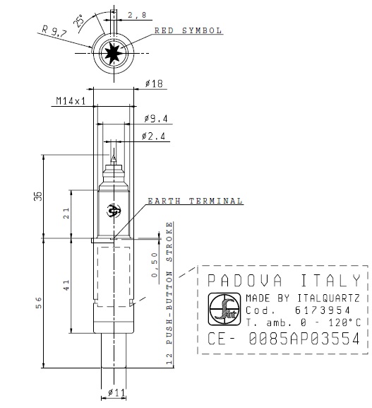 Використовується в підлогових газових котлах та конвекторах торгових марок: Термо Бар, Данко, Атон, Росс, Конвектор, Eurotherm. На кресленні зображені специфікації кнопки розпалювання.